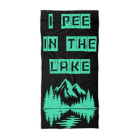 I Pee in the Lake Beach Towel — Funny Lake Vacation Towel with Mountain Graphic